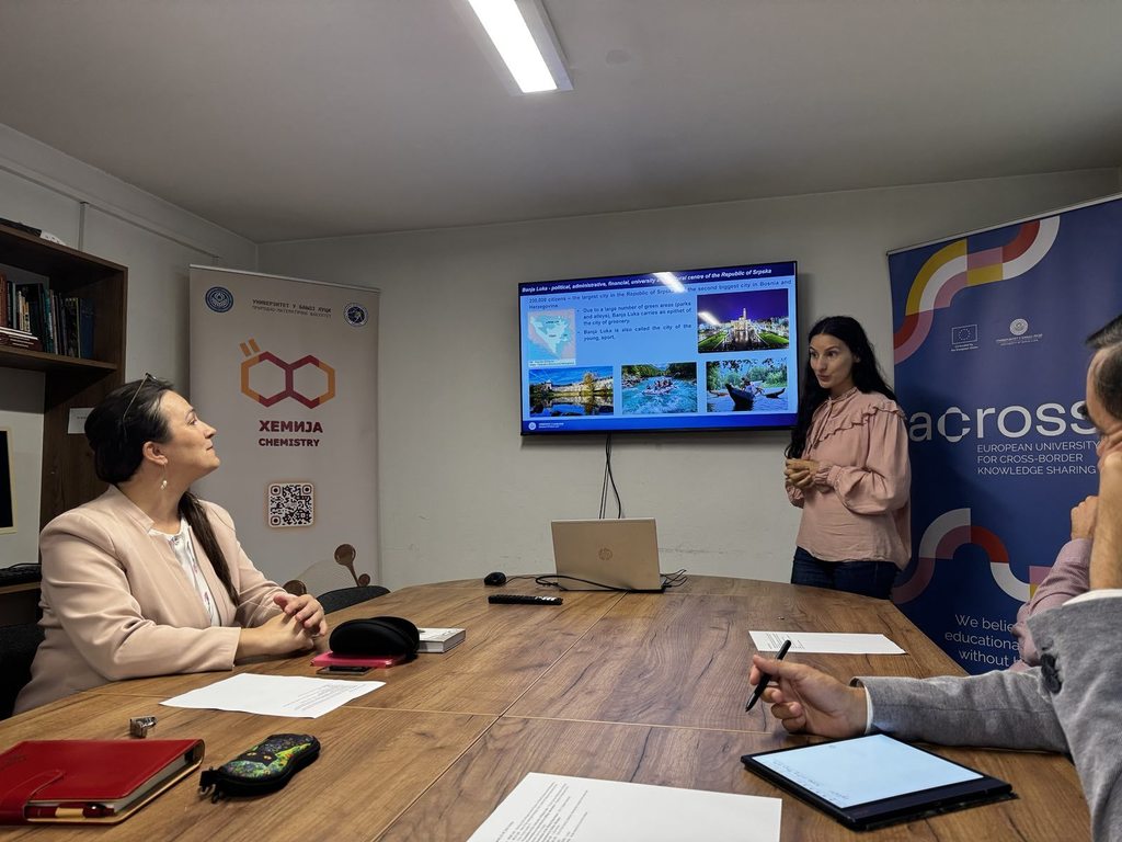 During the working meeting with the Vice-Rector for International and Inter-University Cooperation, Prof. Kristina Pantelić Babić, PhD, the guests were informed about the activities and scientific research work of the Faculty of Mathematics and Natural Sciences, the Faculty of Mining Engineering with the seat in Prijedor, and the Faculty of Technology of the University of Banja Luka.