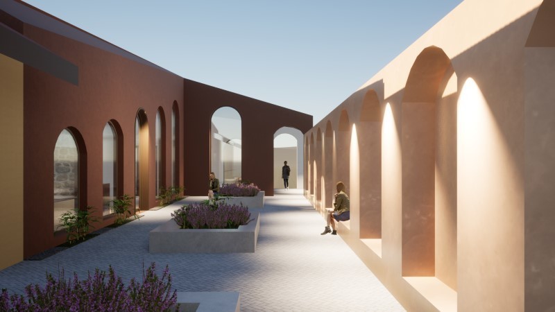 Her project, titled “Ataraxia”, recognized in the student category, presents a contemporary cultural pavilion integrated into the complex of a 16th-century Serbian Orthodox church in Sarajevo. As the author explains, the design pays tribute to the historical heritage of the site by preserving important spaces such as passageways, staircases, and courtyards, while simultaneously reinterpreting arched forms as spatial elements. The use of Corten steel and stone connects old and new, creating a space for community and reflection, highlighting the spiritual and cultural significance of the location.