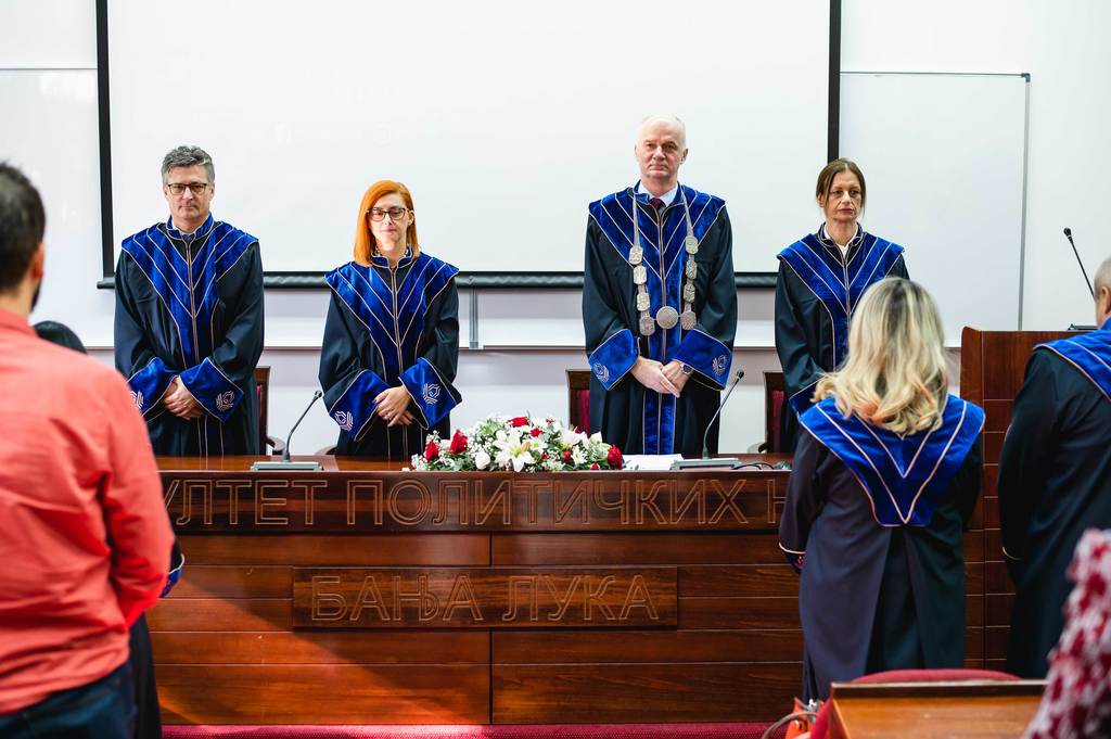 ,,Promocija doktora nauka koji su u protekloj godini doktorirali na Univerzitetu u Banjoj Luci ove godine se dešava 48 godina nakon njegovog osnivanja. Ova godina je 13. uzastopna godina održavanja tradicije ceremonijalnog obilježavanja dodjele doktorata, koja je počela na 35. godišnjicu postojanja Univerzitetaˮ, poručio je rektor Univerziteta u Banjoj Luci prof. dr Radoslav Gajanin na svečanoj promociji održanoj na Fakultetu političkih nauka.