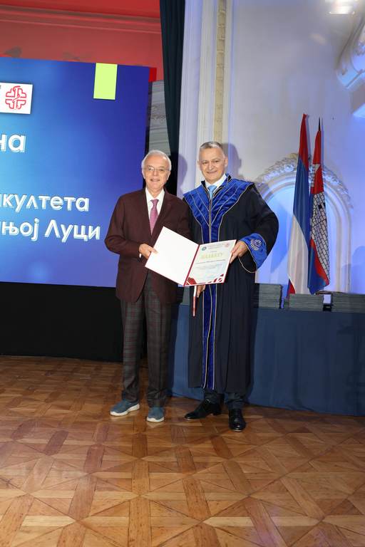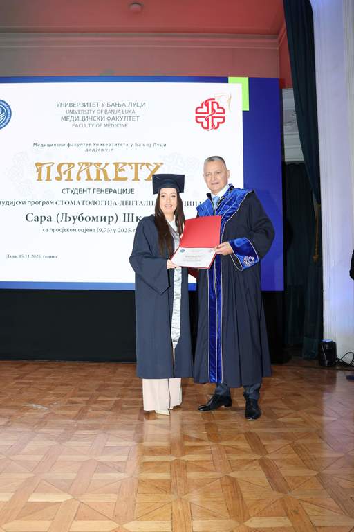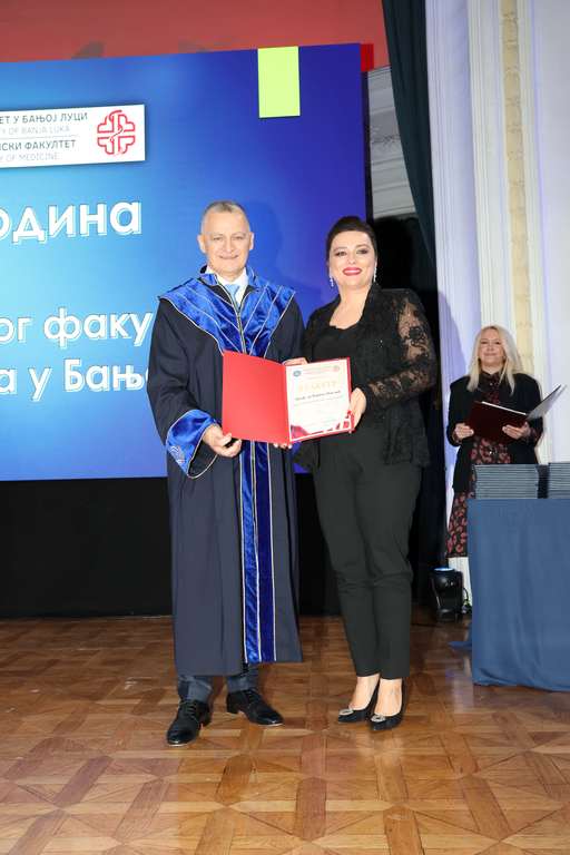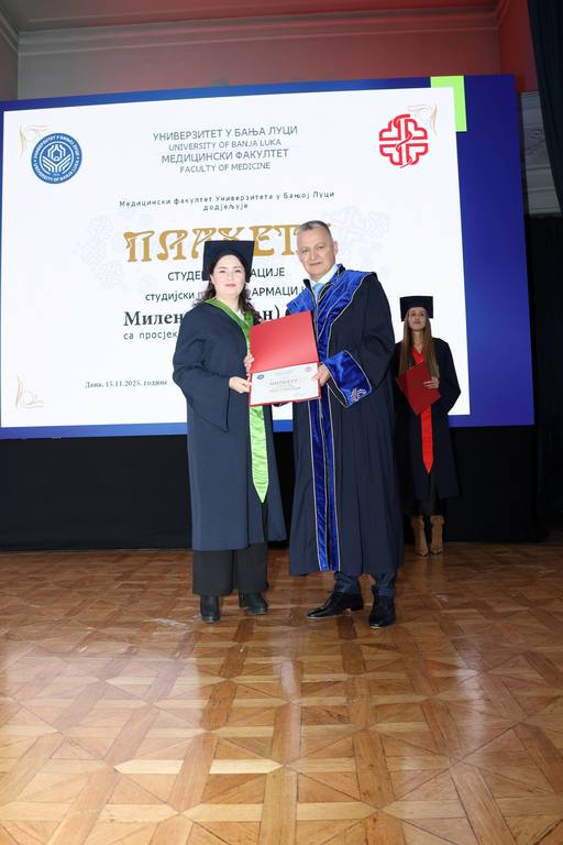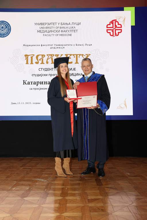 Ovaj događaj, kojem su prisustvovali i prorektori Univerziteta u Banjoj Luci, prof. dr Dalibor Kesić i prof. dr Kristina Pantelić Babić, bio je prilika da se uruče priznanja kako najboljim studentima generacije, tako i istaknutim pojedincima koji su svojim nesebičnim radom doprinijeli razvoju Medicinskog fakulteta.