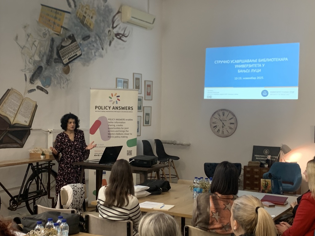 Универзитет у Бањој ЛуциОпштеУ оквиру Хоризонт Европа пројекта POLICY ANSWERS, чији је Филозофски факултет Универзитета у Бањој Луци (УНИБЛ) један од партнера, 11. и 12. новембра 2025. године одржане су радионице намијењене библиотекарима факултетских библиотека.