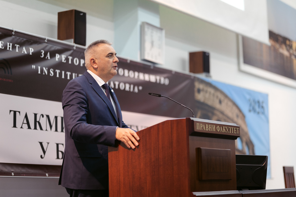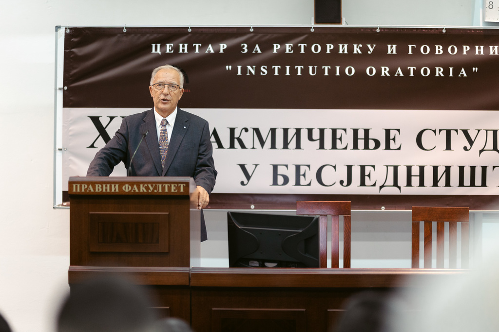 Оснивач и руководилац Центра за реторику и говорништво „Institutio Oratoriaˮ проф. др Никола Мојовић нагласио је значај културе говора, посебно за будуће правнике.