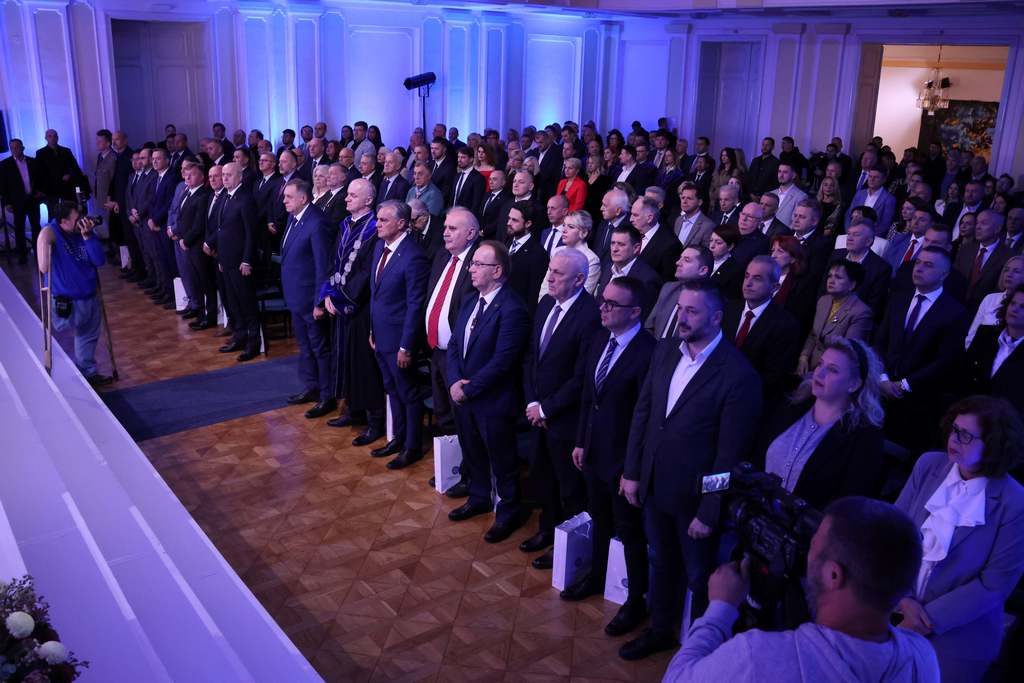 Свечана академија била је и прилика да се уруче признања заслужним појединцима. Титула професора емеритуса додијељена је академику проф. др Рајку Томашу, а почасни докторати министру иностраних послова Мађарске Петеру Сијарту и др Роберту Болију, редовном професору Медицинског факултета Универзитета у Лујвилу у Сједињеним Државама.