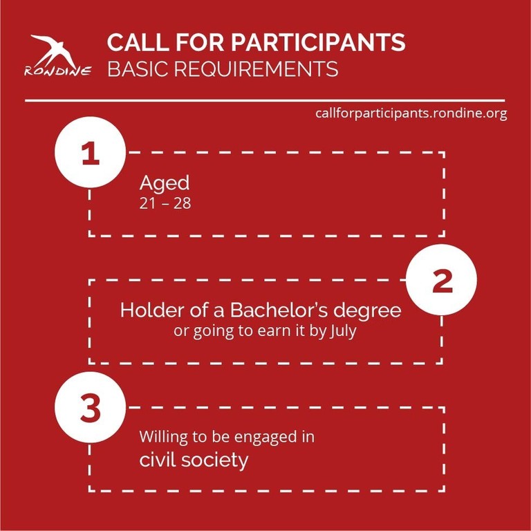 Rondine Cittadella della Pace je програм намијењен дипломцима (или студентима који ће завршити основне студије до јула 2026. године) узраста од 21 до 28 година, а који имају снажну посвећеност цивилном друштву. Учесници ће провести 18 мјесеци у међународном кампусу у Тоскани уз истовремено похађање прве године мастер студија у Италији.