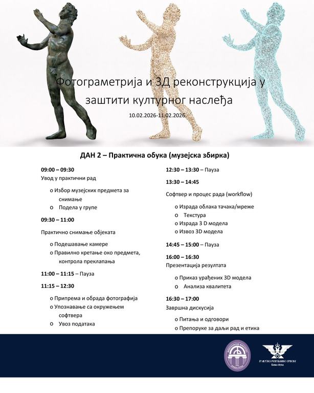 Универзитет у Бањој ЛуциОпштеСтудијски програм Историја Филозофског факултета Универзитета у Бањој Луци организује 10. и 11. фебруара 2026. године радионицу под називом „Фотограметрија и 3Д реконструкцијаˮ, коју ће водити Ненад Јончић, МА, из Народног музеја у Београду.